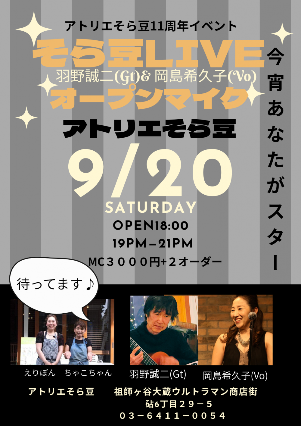 前日の9/19に「そら豆ボイトレ」10:00からありますよ♪