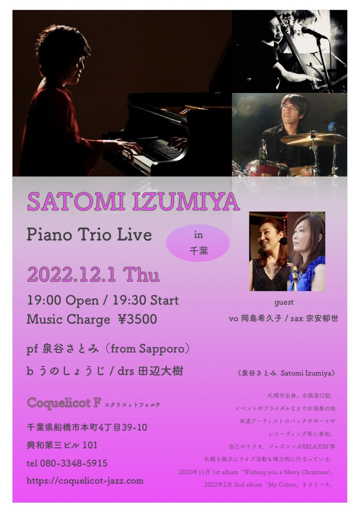 12/1(水)船橋 コクリコットフォルテにてライブです♪